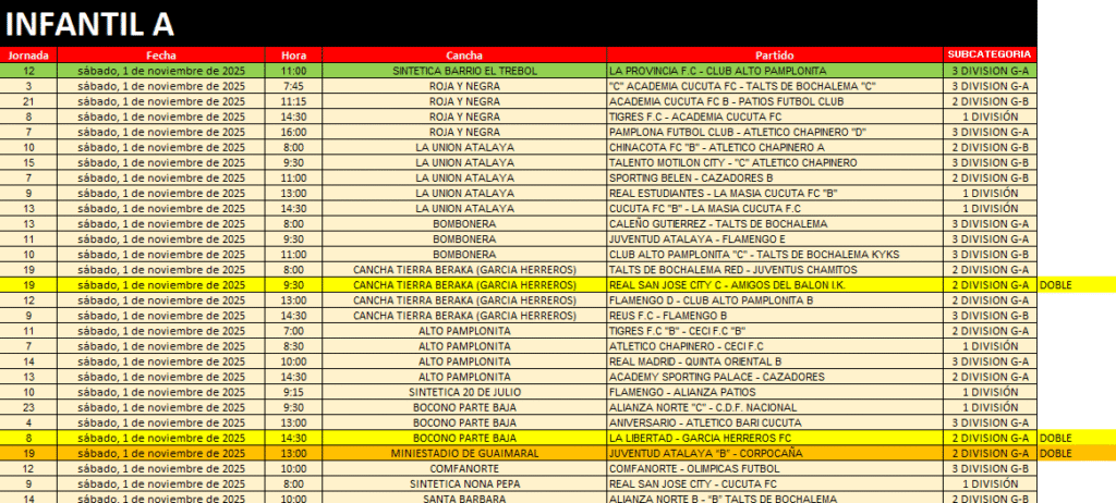 1 DIVISIÓN INFANTIL A (POSICIONES/GOLEADORES)