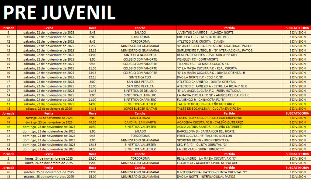 3 DIVISIÓN PRE JUVENIL (POSICIONES/GOLEADORES)